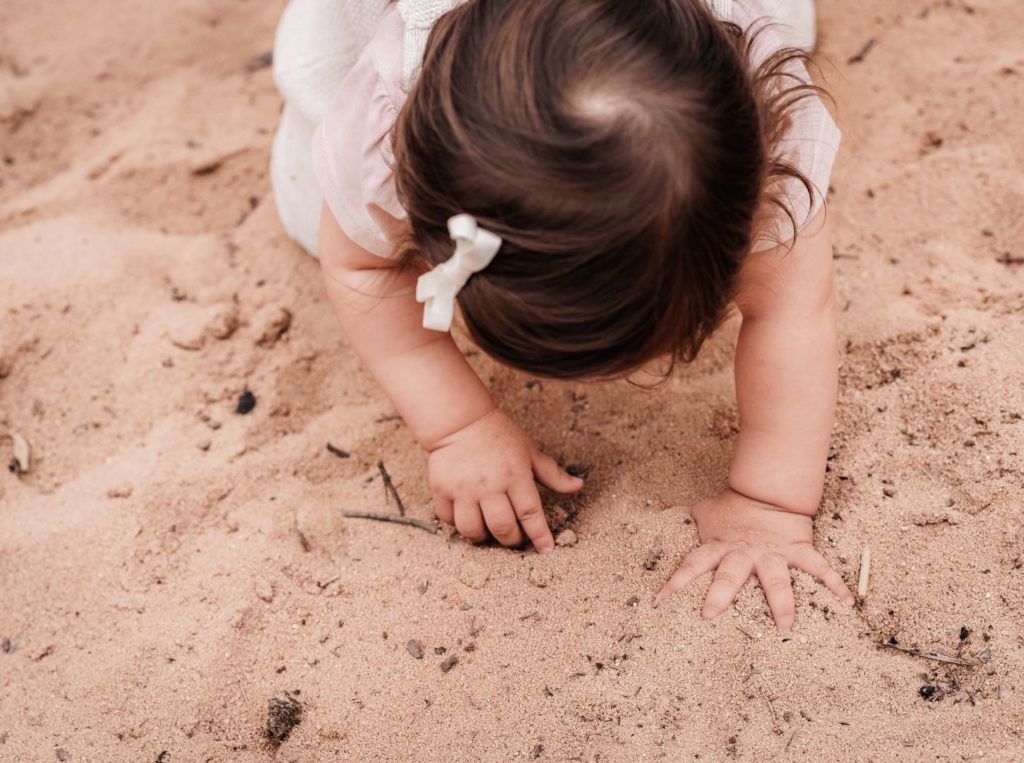 Die Hände voller Sand, eng beieinander, ein stiller Moment nach all dem Lachen.